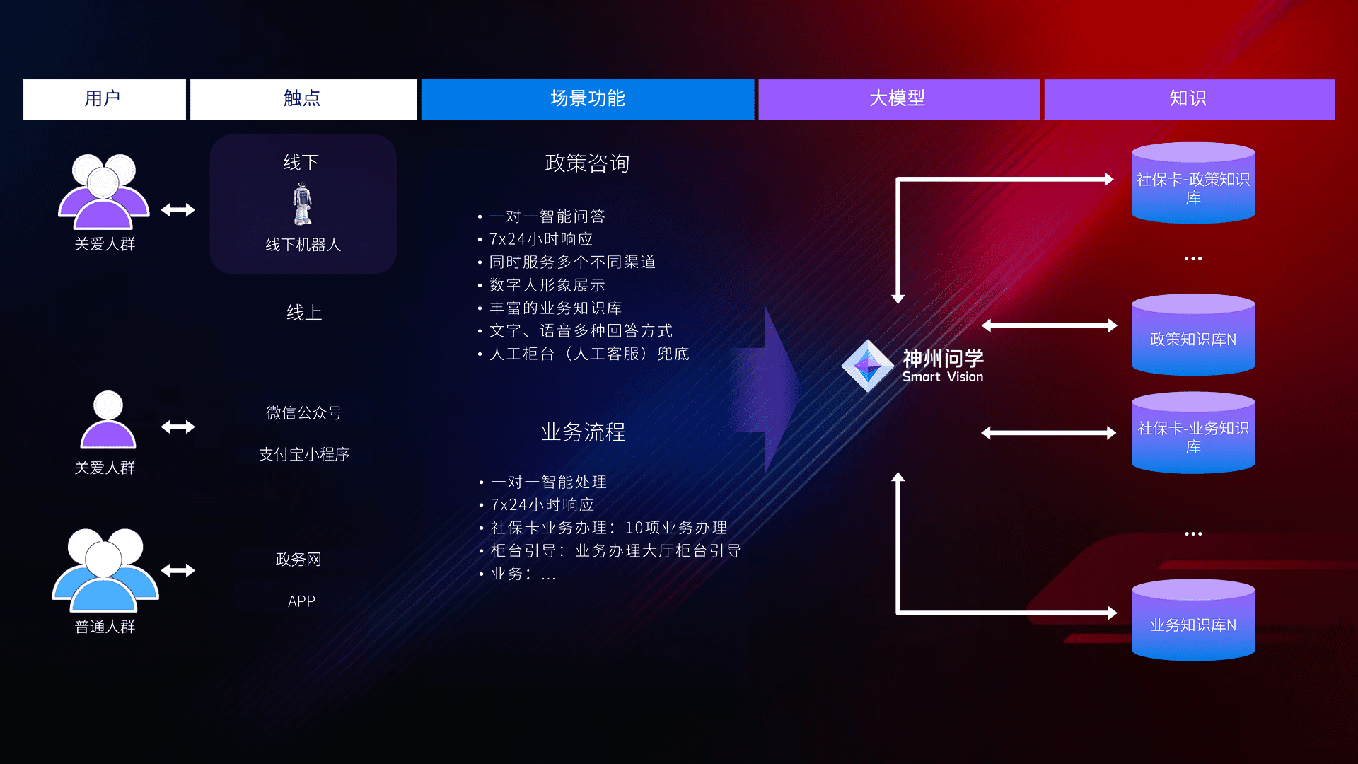 • 线上线下全覆盖:线上提供微信公众号、、、支付宝小程序、、、政务网、、、、app多种渠道,,与线下机器人形成完整服务体系。。。。